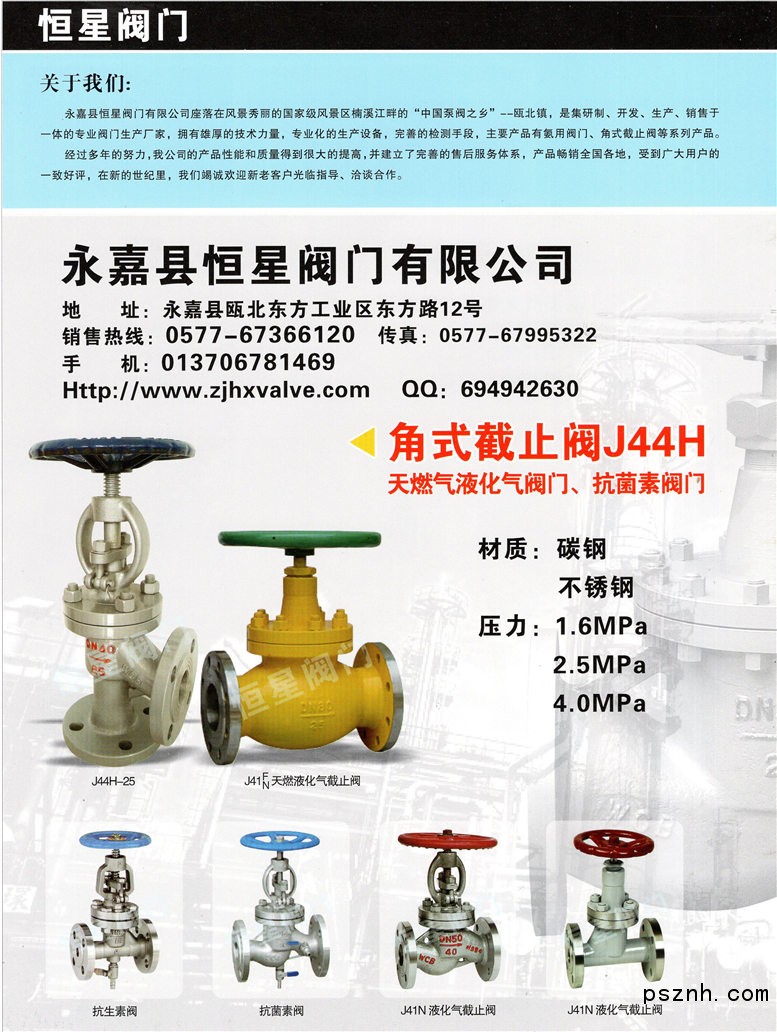 永嘉縣恒星閥門有限公司 氨用截止閥 氨用止回閥 角式截止閥點擊:1000 查看原圖![]() ![]() ![]() 永嘉縣恒星閥門有限公司