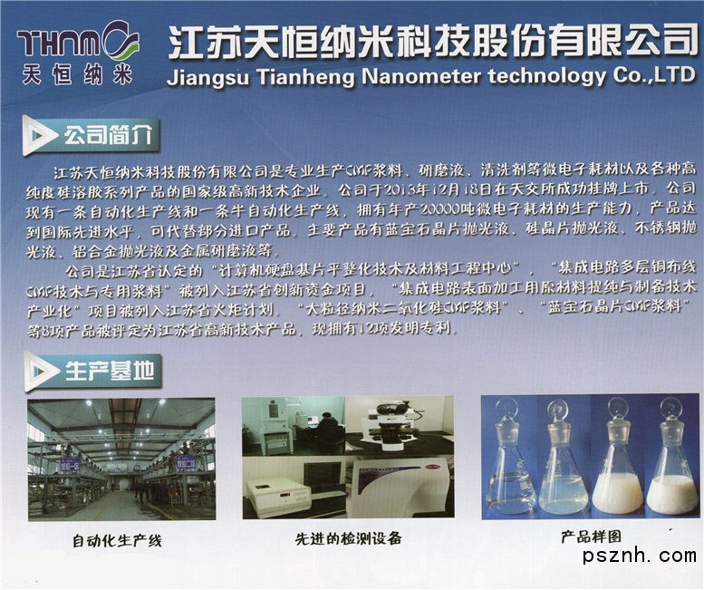 江蘇天恒納米科技股份有限公司 CMP漿料(拋光液) 清洗劑 研磨劑點(diǎn)擊:612 查看原圖![]() ![]() ![]() 王女士 151 6270 7108