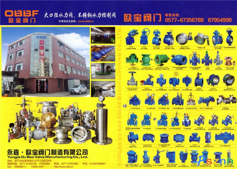 浙江永嘉歐寶閥門制造有限公司_水力控制閥_減壓閥_刀型閘閥_漿液閥_過濾器_調(diào)節(jié)閥_排氣閥_通用閥門點擊:905 查看原圖![]() ![]() ![]() 公司名稱:永嘉歐寶閥門制造有限公司