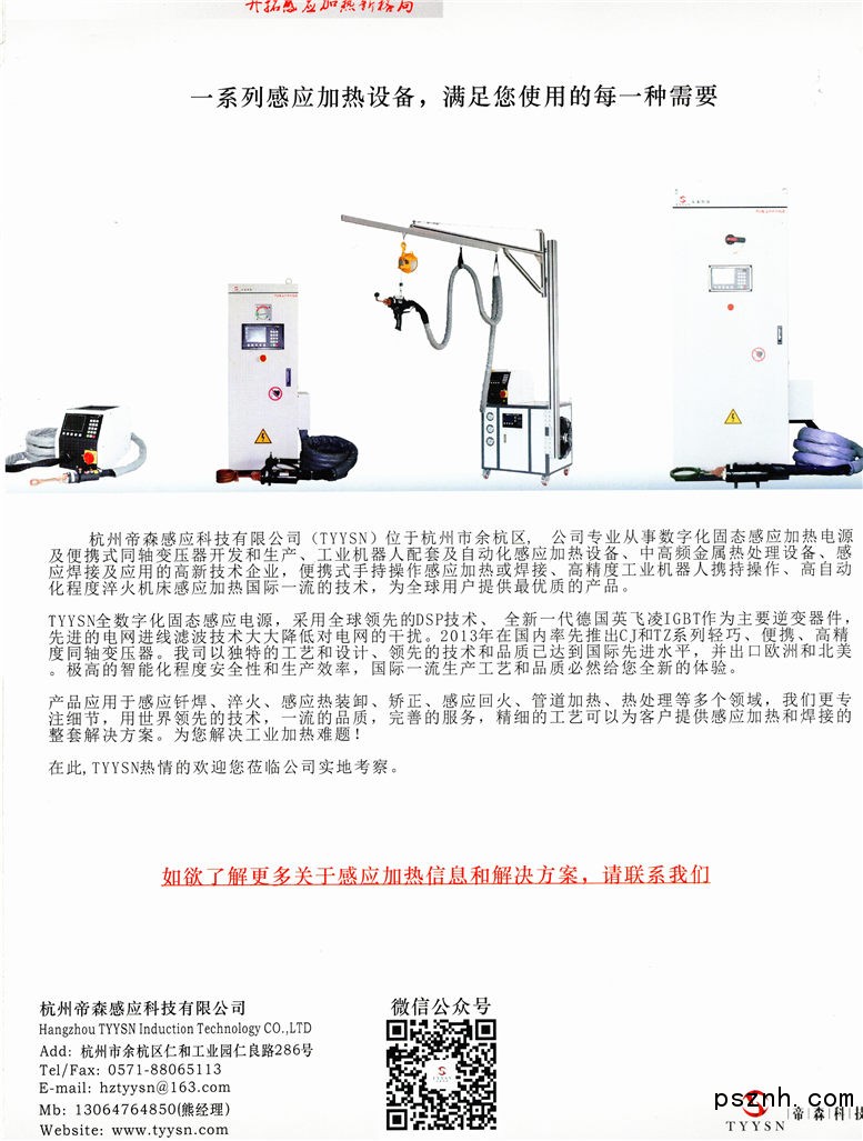 | 經(jīng)營范圍: | 生產(chǎn):感應(yīng)加熱電源設(shè)備、感應(yīng)加熱設(shè)備、同軸變壓器、工業(yè)機(jī)器人、淬火機(jī)床、感應(yīng)加熱制冷設(shè)備、機(jī)電設(shè)備、電磁加熱器、電子產(chǎn)品;銷售:自產(chǎn)產(chǎn)品及其配件;中高頻感應(yīng)加熱電源,變壓器,感應(yīng)器及配件的研發(fā);貨物及技術(shù)進(jìn)出口(法律、行政法規(guī)禁止經(jīng)營的項(xiàng)目除外,法律、行政法規(guī)限制經(jīng)營的項(xiàng)目取得許可證后方可經(jīng)營); | ||