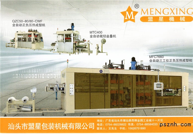汕頭市盟星包裝機械有限公司 QZC50-80/120-CWF全自動正負壓成型機 MTC400全伺服自動裁切機MTC400全伺服自動裁切機點擊:1467 查看原圖![]() ![]() ![]() 廠址:廣東省汕頭市潮汕路西側金園工業(yè)城十一片區(qū)