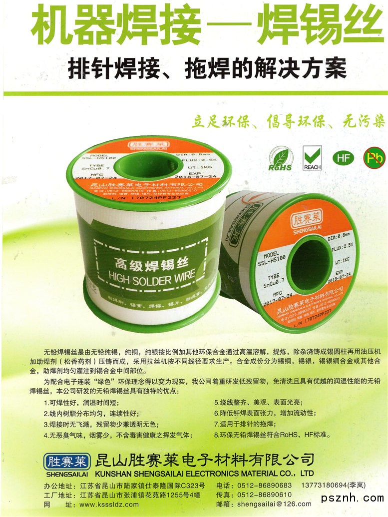 昆山勝賽萊電子材料有限公司 焊錫膏、助焊劑點(diǎn)擊:455 查看原圖![]() ![]() ![]() 左輝 先生