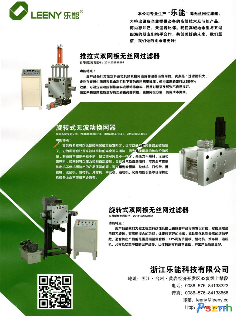 | 經(jīng)營(yíng)范圍: | 塑料加工專用設(shè)備、環(huán)保設(shè)備研發(fā)、制造,塑料制品、模具制造,建材銷售,技術(shù)進(jìn)出口與貨物進(jìn)出口。 | ||
