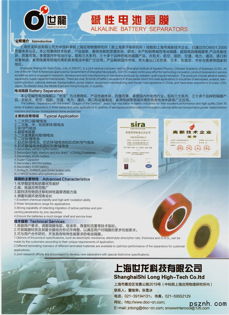 上海世龍科技有限公司 堿性電池隔膜 聚烯烴熱收縮材料 聚丙烯無紡布點(diǎn)擊:622 查看原圖![]() ![]() ![]() 聯(lián)系人: 周江松