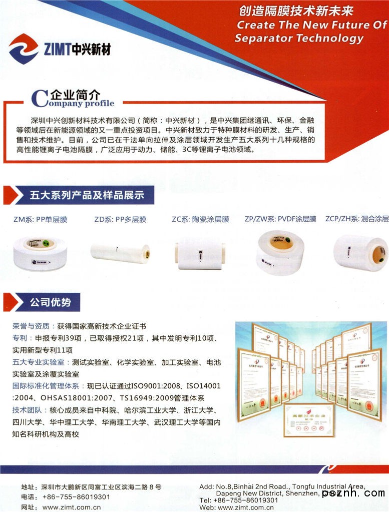 深圳中興創(chuàng)新材料技術(shù)有限公司 鋰離子電池隔膜 特種高分子膜材料 特種膜材料 干法單向拉伸及涂層 深圳電池展點擊:1471 查看原圖![]() ![]() ![]() 1、公司地址: