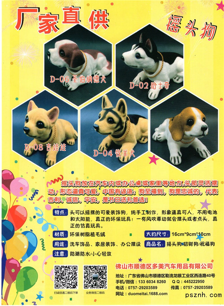 佛山市順德區(qū)多美汽車用品有限公司 搖頭狗_樹脂_尼龍絨毛點擊:556 查看原圖![]() ![]() ![]() 公司地址: