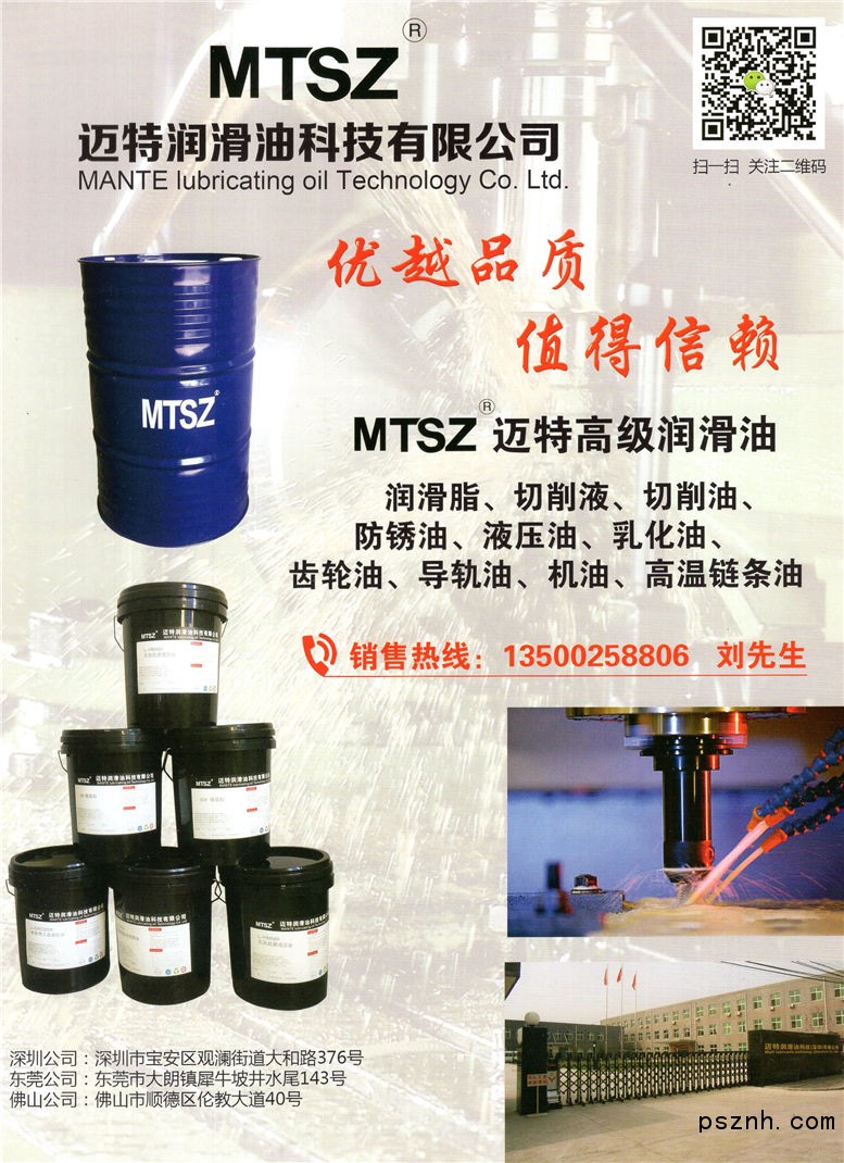 邁特潤滑油科技(深圳)有限公司 切削液、磨削液、潤滑油、潤滑油添加劑、液壓油、機(jī)油、防銹油點(diǎn)擊:688 查看原圖![]() ![]() ![]() 公司地址: