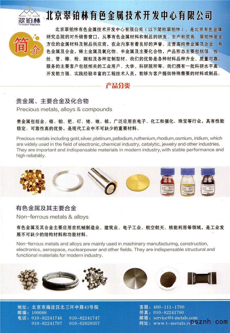 | 公司名稱: | 北京翠鉑林有色金屬技術(shù)開發(fā)中心有限公司 | ||