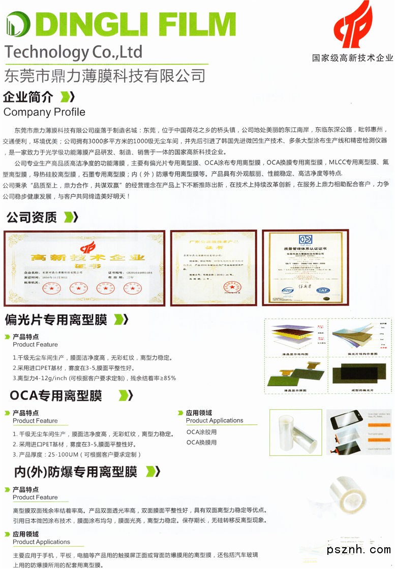| 公司名稱: | 東莞市鼎力薄膜科技有限公司 | ||