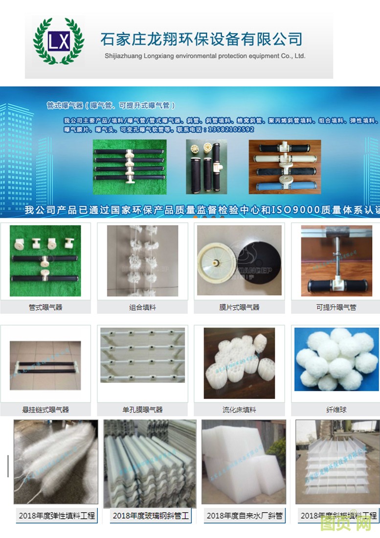 石家莊龍翔環(huán)保設(shè)備有限公司是以環(huán)保填料、水處理藥劑、濾料、各種微孔曝氣裝置、環(huán)保配件及機(jī)械設(shè)備的研發(fā)、組裝和銷售、安裝及售后服務(wù)為一體的水處理環(huán)保企業(yè),并經(jīng)國(guó)家環(huán)保產(chǎn)品質(zhì)量監(jiān)督檢驗(yàn)中心和ISO9000質(zhì)量管理體系認(rèn)證。我公司產(chǎn)品廣泛用于市政污水處理廠及各種工業(yè)廢水(制藥、食品、造紙、印染、釀造、紡織、化學(xué)、制革)處理站等。