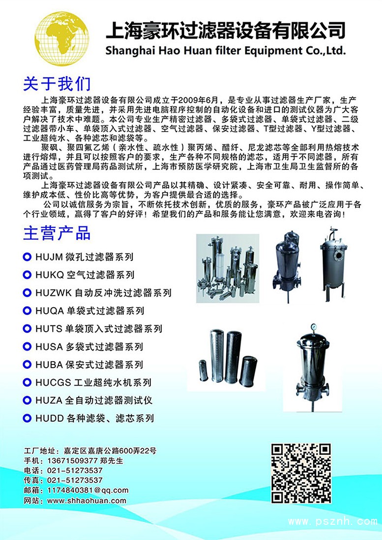 | 公司名稱: | 上海豪環(huán)過濾器設(shè)備有限公司 | ||