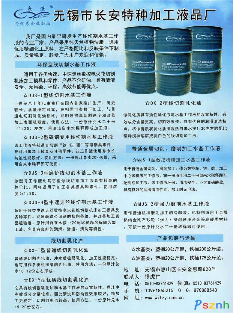 | 公司名稱: | 無錫市長安特種加工液品廠 | ||
