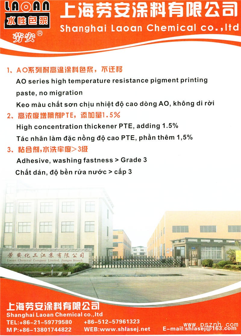 上海勞安涂料有限公司 TH系列造紙專用著色劑 陽離子接枝劑 染色粘合劑,點擊:1272 查看原圖![]() ![]() ![]() 電 話:0086-512-50150986