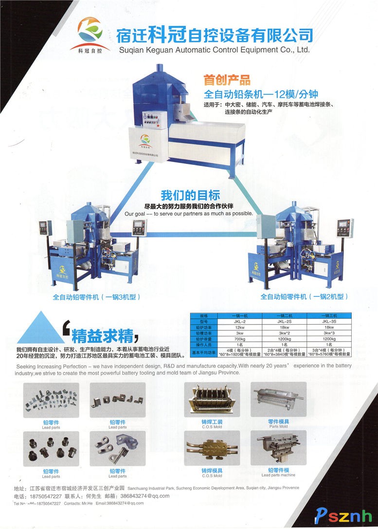 宿遷科冠自控設備有限公司 _鉛零件機_鉛零件_蓄電池設備_鑄焊模具_板柵模具點擊:1593 查看原圖![]() ![]() ![]() 公司名稱: 宿遷科冠自控設備有限公司