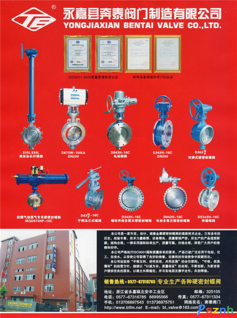 浙江奔泰閥門制造有限公司 _蝶閥_球閥_閘閥_平板閘閥_截止閥_蝶閥點擊:1827 查看原圖![]() ![]() ![]() 王先生