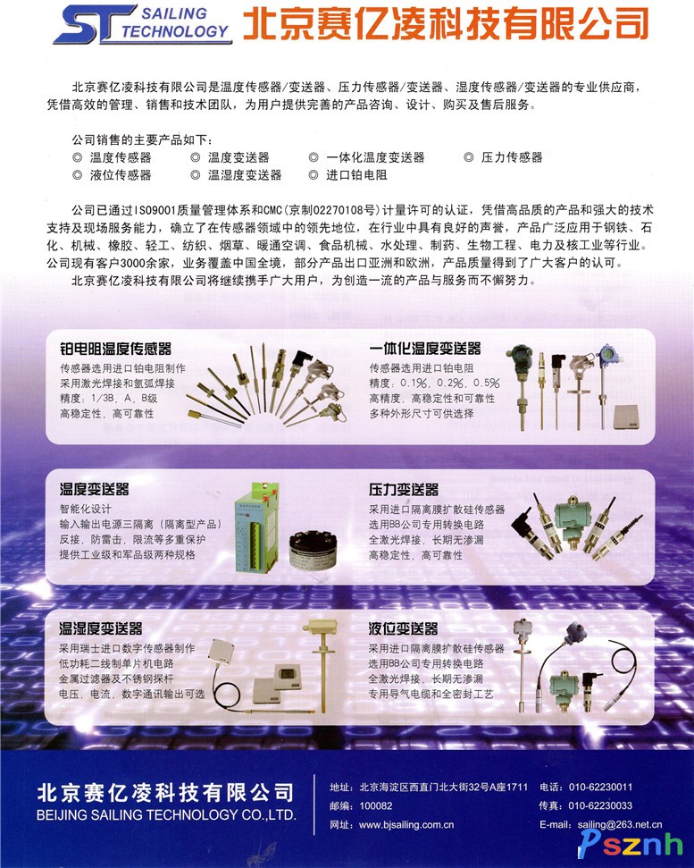 北京賽億凌科技有限公司 鉑電阻溫度傳感器 溫度變送器 一體化溫度變送器點(diǎn)擊:1455 查看原圖![]() ![]() ![]() 北京賽億凌科技有限公司