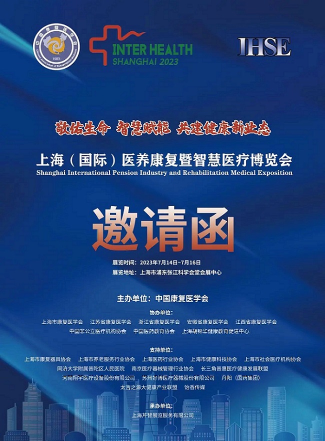 大健康、大趨勢(shì)、大事業(yè)。今天的健康產(chǎn)業(yè)站在了一個(gè)新的歷史大健康起點(diǎn)上。今天的康復(fù),正在成為各類人才大有可為、大有作為的康復(fù)熱土,為助力打造與城市地位相匹配,中國(guó)一流、世界先進(jìn)的全民健康體系,由中國(guó)康復(fù)醫(yī)學(xué)會(huì)主辦,上海市康復(fù)醫(yī)學(xué)會(huì)、江蘇省康復(fù)醫(yī)學(xué)會(huì)、浙江省康復(fù)醫(yī)學(xué)會(huì)、安徽省康復(fù)醫(yī)學(xué)會(huì)、江西省康復(fù)醫(yī)學(xué)會(huì)聯(lián)合協(xié)辦的“2023上海(國(guó)際)醫(yī)養(yǎng)康復(fù)暨智慧醫(yī)療博覽會(huì)” (以 下簡(jiǎn)稱“上??挡?huì)”) 將于2023年7月14日-16日在上海市張江科學(xué)會(huì)堂會(huì)展中心舉辦。博覽會(huì)以“敬佑生命 智慧賦能 共建健康新業(yè)態(tài)”為主題,全面會(huì)聚國(guó) 內(nèi)外知名專家,圍繞“智慧醫(yī)療、醫(yī)養(yǎng)康復(fù)、智慧養(yǎng)老、體育健康” 等產(chǎn)業(yè)推動(dòng)長(zhǎng)三角地區(qū)生命健康技術(shù)進(jìn)一步融合,形成高質(zhì)量發(fā)展的區(qū)域引領(lǐng)。