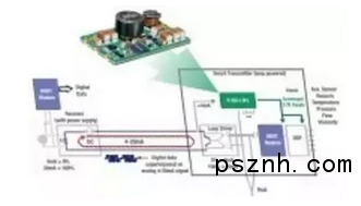 圖3:使用DSP和HART調制解調器可以讓多個傳感器的信號整合并以數(shù)字形式通過4-20mA環(huán)路。這些器件由創(chuàng)新的電流增壓器供電,跟傳統(tǒng)的線性穩(wěn)壓器相比,增壓器能夠從環(huán)路中汲取三倍的功率。