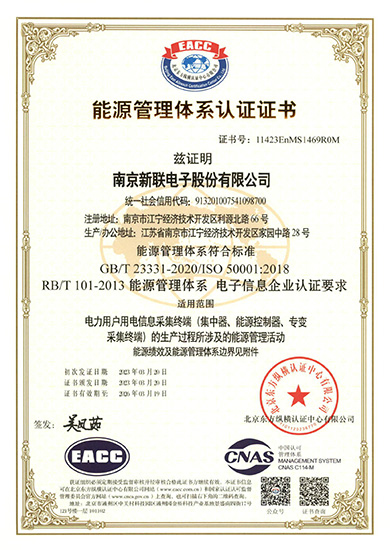 新聯(lián)電子用電信息采集系列終端獲得能源管理體系認證