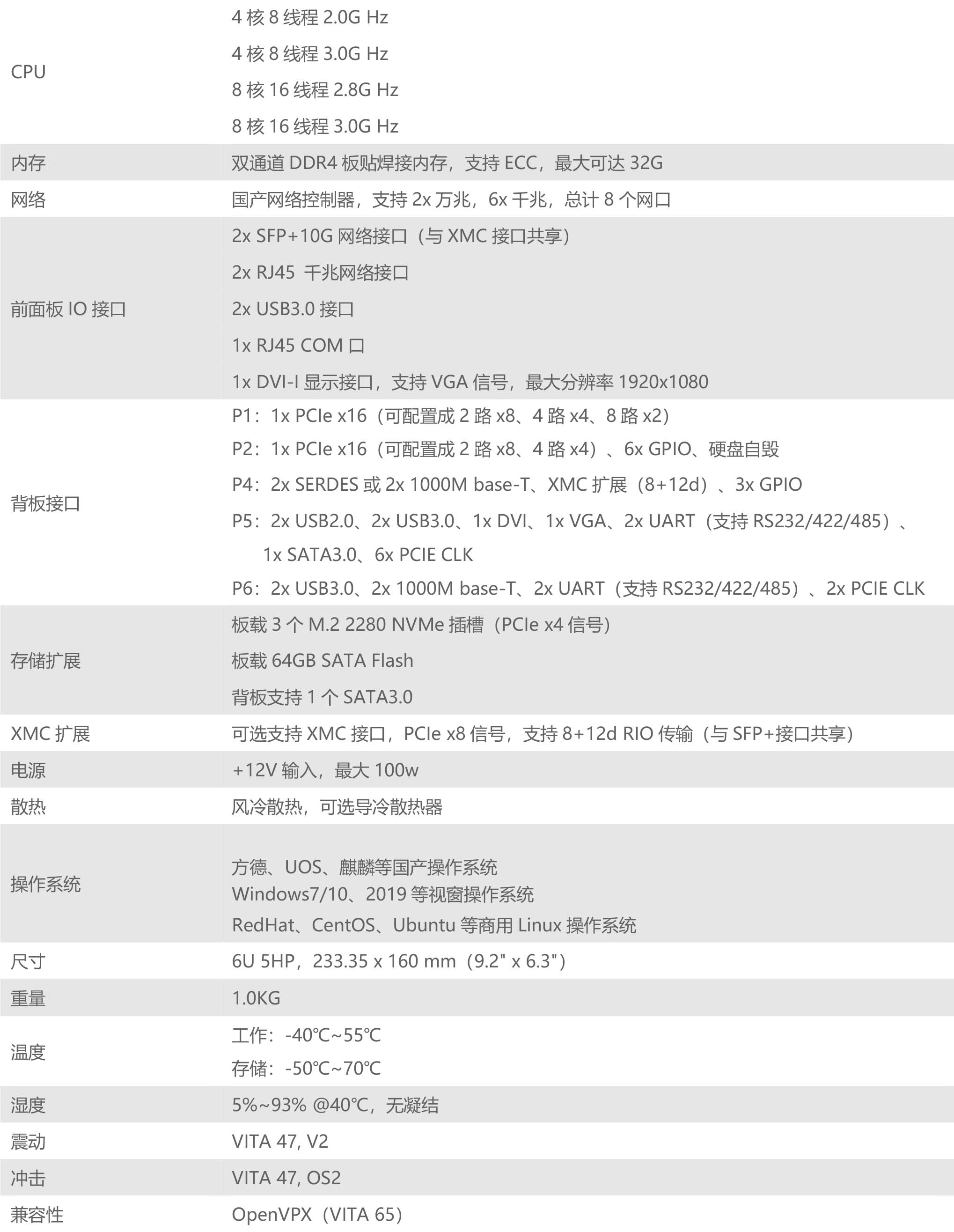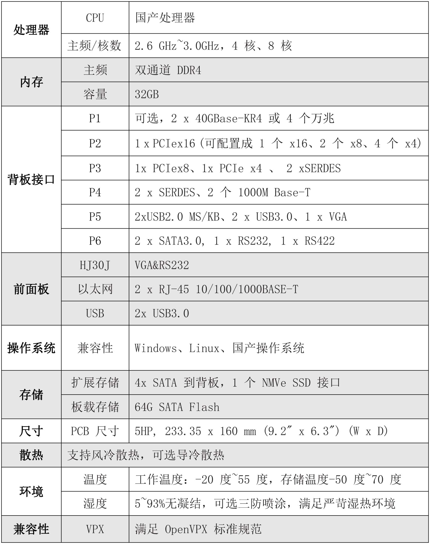 高性能國產(chǎn)處理器VPX計(jì)算刀片。搭載國產(chǎn)高性能多核處理器,背板支持多種總線及IO擴(kuò)展,幫助提升系統(tǒng)的部署密度及空間使用率,降低系統(tǒng)成本。