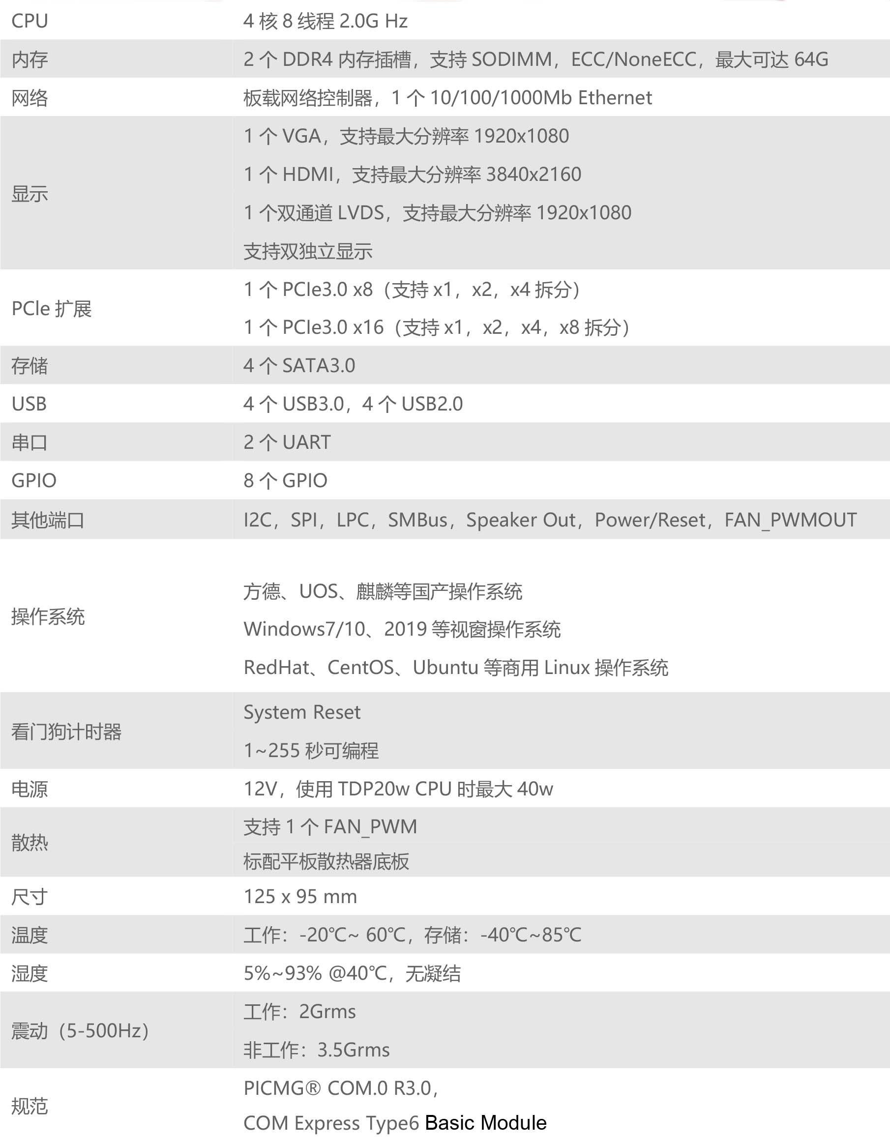 基于國產(chǎn)高性能處理器的COMe Type6核心板。產(chǎn)品采用國產(chǎn)高性能4核處理器,支持標(biāo)準(zhǔn)Type6 COMe結(jié)構(gòu)及接口總線,有較強(qiáng)的通用性。配合使用其他國產(chǎn)操作系統(tǒng),實(shí)現(xiàn)平臺(tái)的穩(wěn)定、可靠運(yùn)行。