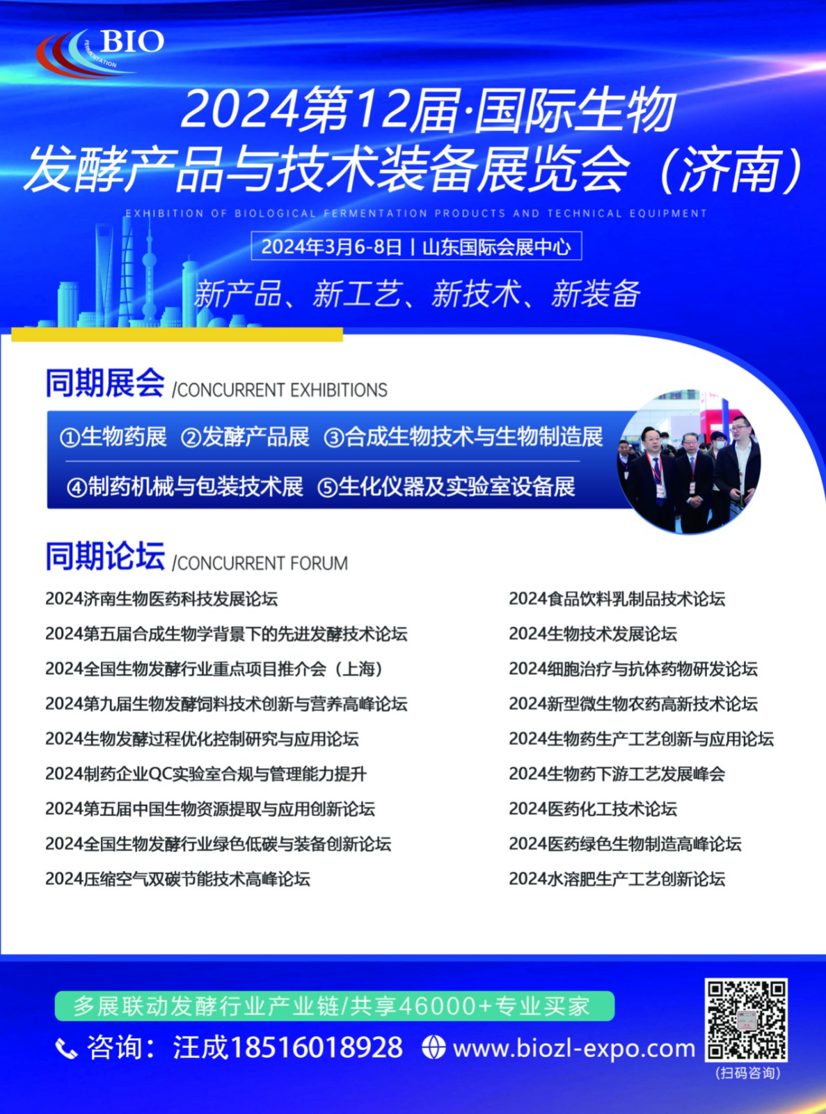 202412屆國際生物發(fā)酵產(chǎn)品與技術(shù)裝備展(濟(jì)南展)