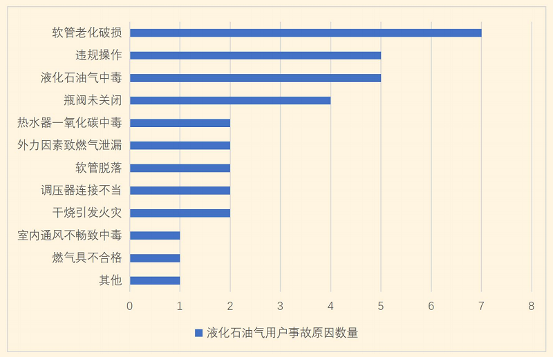 “報(bào)告”顯示(見(jiàn)上圖),2023上半年造成液化石油氣用戶事故最多的因素為:軟管老化破損、違規(guī)操作、液化石油氣中毒、瓶閥未關(guān)閉,其中軟管老化破損排第一位,這與液化石油氣瓶需要反復(fù)充裝、換瓶,軟管維護(hù)缺失等有很大關(guān)系。