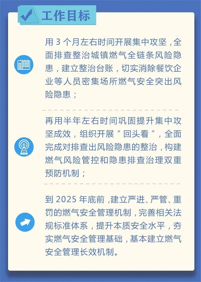 近日,國(guó)務(wù)院安委會(huì)印發(fā)《全國(guó)城鎮(zhèn)燃?xì)獍踩珜m?xiàng)整治工作方案》(以下簡(jiǎn)稱“方案”),迅速引發(fā)行業(yè)密切關(guān)注。“方案”工作將按集中攻堅(jiān)、全面鞏固提升、建立長(zhǎng)效機(jī)制三個(gè)階段遞進(jìn)式開(kāi)展。