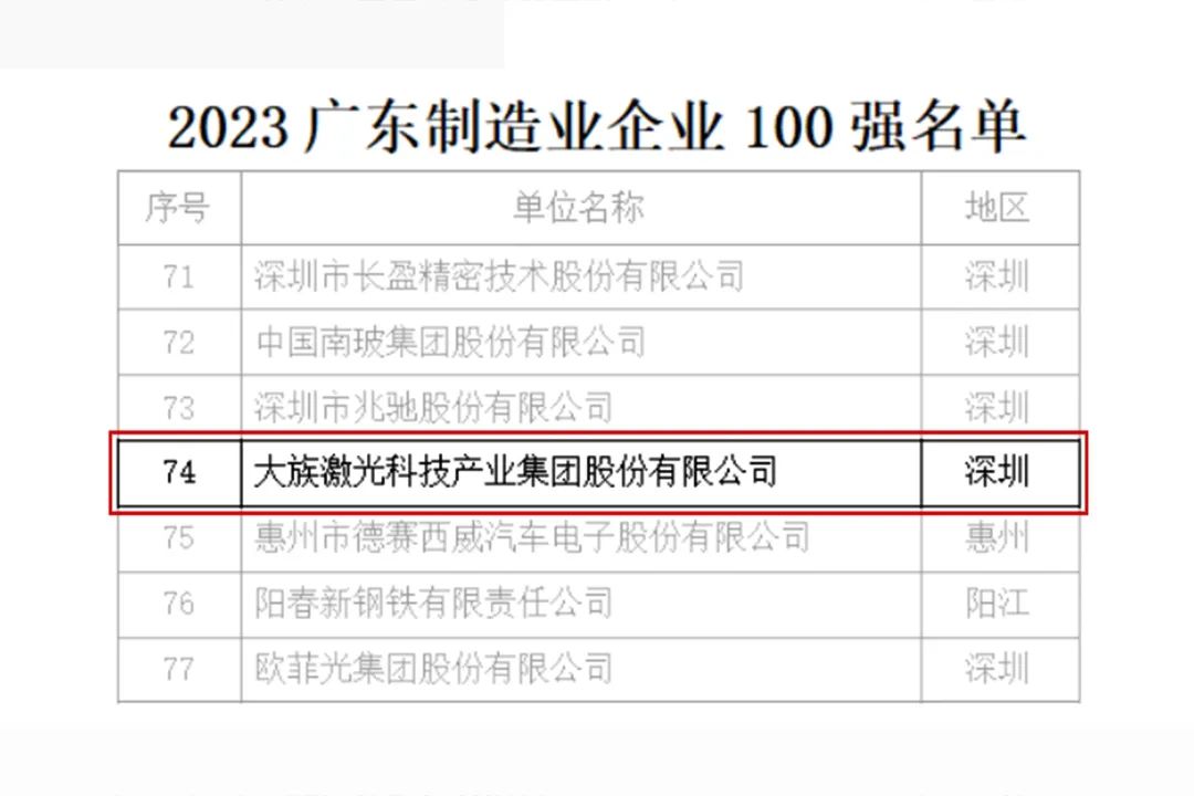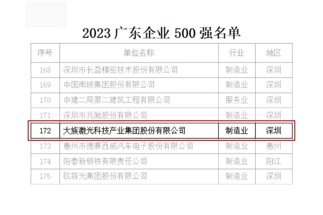 近日,廣東省企業(yè)聯(lián)合會、廣東省企業(yè)家協(xié)會在廣州舉辦2023廣東500強企業(yè)發(fā)展大會,此次大會以“強化龍頭引領,推動產(chǎn)業(yè)升級”為主題,正式發(fā)布2023廣東企業(yè)500強榜單。大族激光憑借雄厚的綜合實力和穩(wěn)健表現(xiàn),入圍廣東企業(yè)500強,同時上榜2023廣東省民營企業(yè)100強和2023廣東省制造業(yè)民營企業(yè)100強,分別位列92名、74名。
