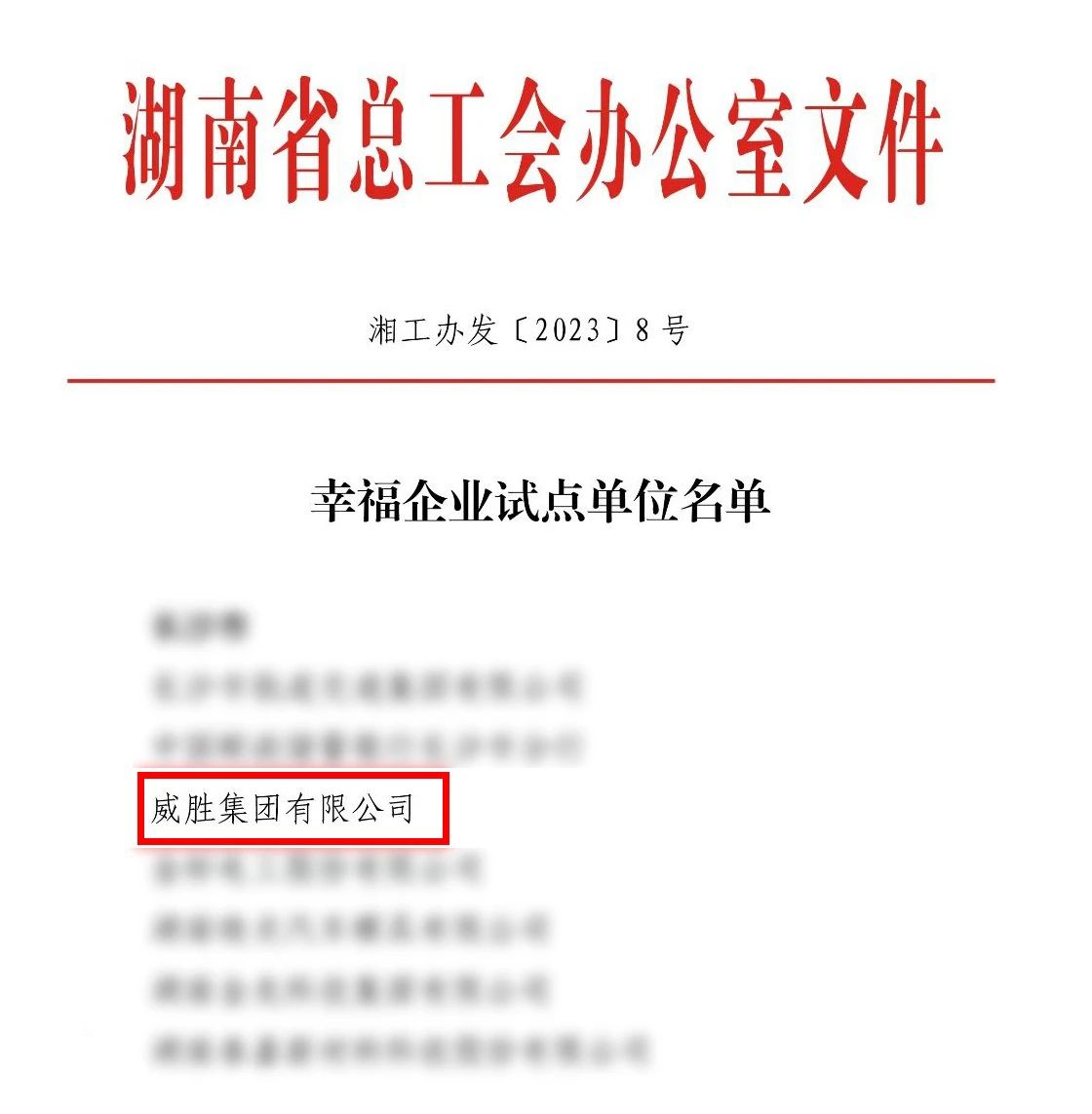 近日,湖南省總工會下發(fā)《湖南省總工會辦公室關于發(fā)布第二批服務職工綜合體和幸福企業(yè)(園區(qū))試點單位名單的通知》,威勝集團有限公司成功榮獲“湖南省幸福企業(yè)試點單位”。