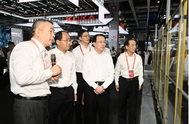 9月24日上午,工信部副部長(zhǎng)單忠德,上海市委副書(shū)記、市長(zhǎng)龔正等領(lǐng)導(dǎo)巡館并至上海發(fā)那科展臺(tái),在上海電氣集團(tuán)董事長(zhǎng)吳磊和上海發(fā)那科總經(jīng)理錢(qián)暉的陪同下,聽(tīng)取上海發(fā)那科在工業(yè)機(jī)器人研發(fā)、智能制造解決方案等方面的進(jìn)展,了解公司在智能制造領(lǐng)域取得的創(chuàng)新成果。