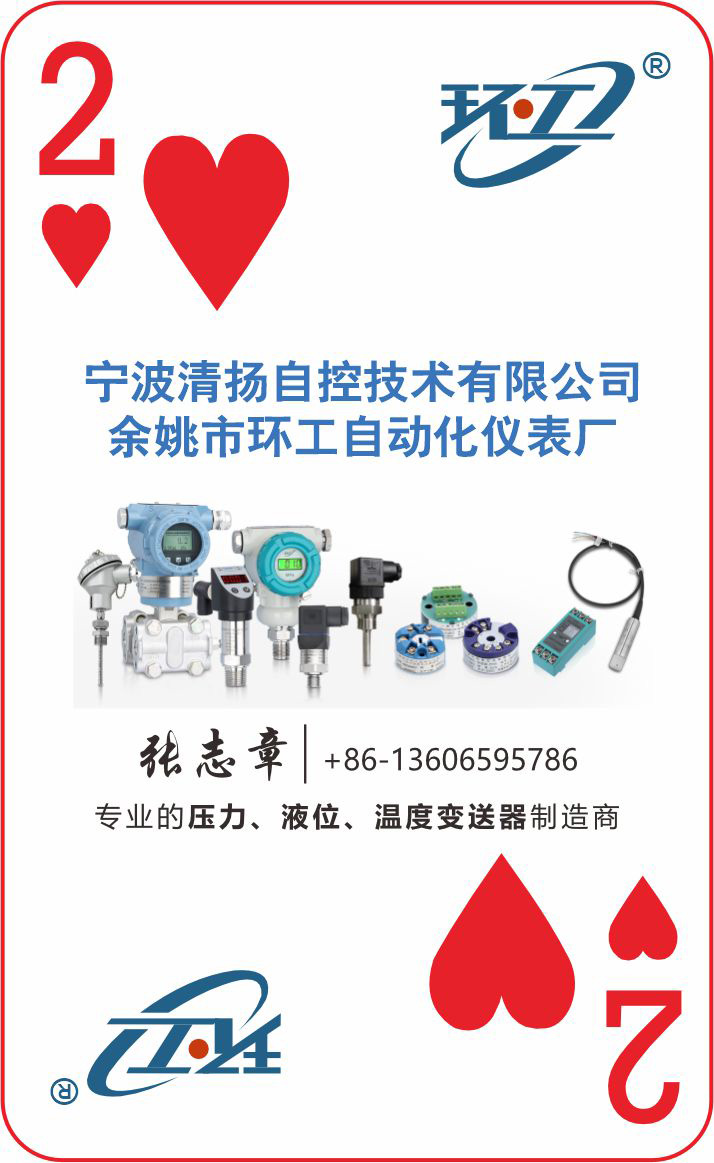 余姚市環(huán)工自動(dòng)化儀表廠參與《2025 圖頁(yè)網(wǎng)儀表行業(yè)摜蛋撲克牌》認(rèn)領(lǐng)紅桃 2 的行動(dòng),充分展現(xiàn)了該廠在行業(yè)內(nèi)的強(qiáng)大影響力和綜合競(jìng)爭(zhēng)力。相信在未來(lái)的發(fā)展中,余姚市環(huán)工自動(dòng)化儀表廠將繼續(xù)秉承其技術(shù)創(chuàng)新和品質(zhì)至上的理念,不斷加強(qiáng)研發(fā)投入,提升產(chǎn)品質(zhì)量,深化合作交流,進(jìn)一步拓展國(guó)內(nèi)外市場(chǎng),為推動(dòng)儀表行業(yè)的高質(zhì)量發(fā)展貢獻(xiàn)更大的力量,在自動(dòng)化測(cè)控領(lǐng)域創(chuàng)造更加輝煌的業(yè)績(jī)。