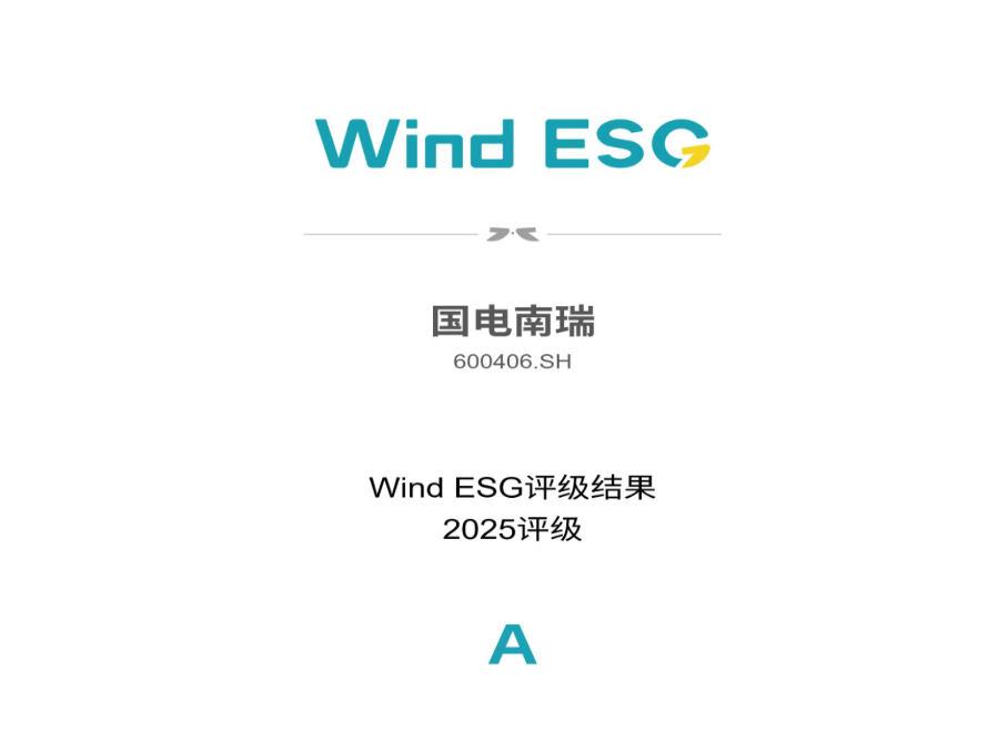 國電南瑞榮獲2025年度WIND萬得ESG A級評價