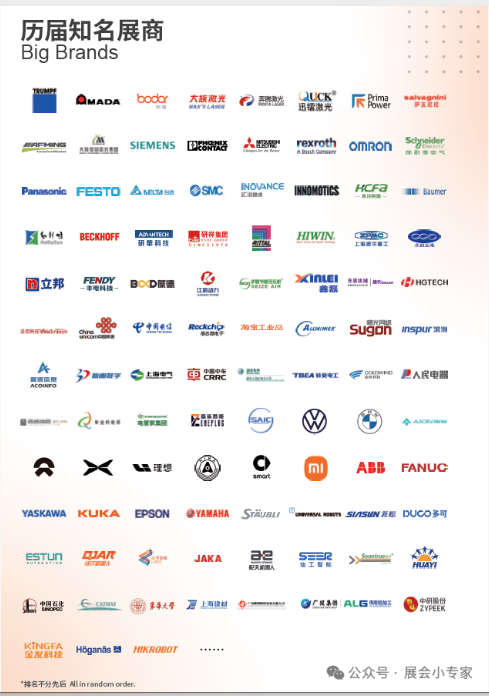機(jī)器人展2012年設(shè)立機(jī)器人展區(qū),2013年首次獨(dú)立設(shè)主題展為工業(yè)機(jī)器人展,2015年更名為機(jī)器人展。機(jī)器人展每年一屆,已經(jīng)成為行業(yè)發(fā)展風(fēng)向標(biāo),被認(rèn)為是世界機(jī)器人領(lǐng)域具魅力的專(zhuān)業(yè)展會(huì)之一。展品大類(lèi):工業(yè)機(jī)器人整機(jī)、系統(tǒng)集成應(yīng)用、核心部件、服務(wù)機(jī)器人、特種機(jī)器人。歷屆知名展商:ABB、FANUC、KUKA、安川電機(jī)、川崎、史陶比爾、那智不二越、Rethink Robotics,現(xiàn)代重工、松下、歐地希、柯馬、優(yōu)傲機(jī)器人、新松、廣州數(shù)控、埃斯頓、埃夫特、新時(shí)達(dá)、博眾、賽騰、華昌達(dá)、大疆、中信重工、配天、亞威徠斯、李群自動(dòng)化、固頂、沃迪、高威科、雄克、速德、三菱電機(jī)、雅馬哈、愛(ài)普生、電裝、東芝機(jī)械、車(chē)樂(lè)美、東部機(jī)器人、艾衛(wèi)艾、羅普伺達(dá)、納博特斯克、拉法特、哈默納科、電產(chǎn)新寶、昂華、華太、福賽特、錢(qián)江機(jī)器人、達(dá)意隆、東佑達(dá)、眾為興、上海機(jī)器人產(chǎn)業(yè)園、眾拓等。