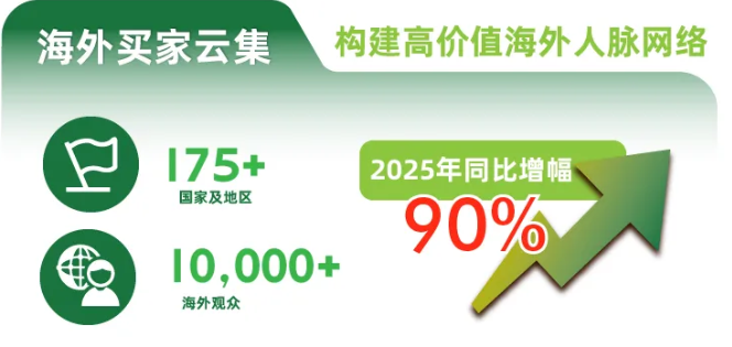 2026年,展會海外勢能將再升級,我們預(yù)計精準(zhǔn)邀約11,000+海外的專業(yè)買家,覆蓋全球核心市場:美國、加拿大、意大利、波蘭、法國、德國、西班牙、白俄羅斯、英國、俄羅斯、韓國、日本、新加坡、馬來西亞、泰國、越南、印度尼西亞、菲律賓、柬埔寨、印度、巴基斯坦、阿拉伯聯(lián)合酋長國、沙特阿拉伯等國家及地區(qū)買家,讓企業(yè)與海外買家面對面,高效打通全球化市場渠道。