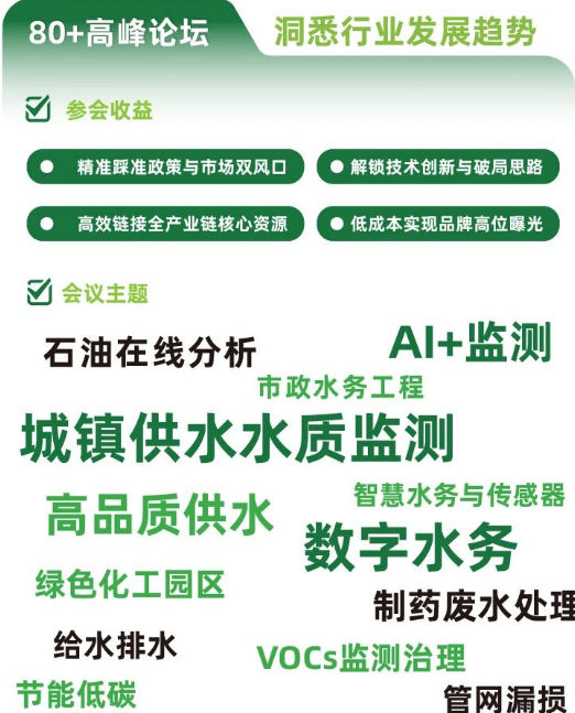 2026 上海儀器儀表展不僅是產(chǎn)品展示的舞臺,更將為企業(yè)量身打造「政策解碼+技術(shù)破局+資源變現(xiàn)」的一站式賦能平臺。展會攜世環(huán)會系列展同期推出80余場高規(guī)格行業(yè)論壇,集結(jié)1000+行業(yè)專家、技術(shù)領(lǐng)軍者與采購決策人,聚焦供水水質(zhì)監(jiān)測、石油化工智能監(jiān)測、數(shù)字水務(wù)創(chuàng)新、AI+智慧監(jiān)測、VOCs治理等核心熱點,為企業(yè)帶來實打?qū)嵉膬r值增益。