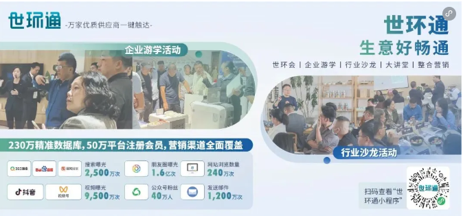 世環(huán)通是專注于節(jié)能減排與低碳環(huán)保的綠色環(huán)境產(chǎn)業(yè)采購服務(wù)平臺。采購商通過世環(huán)通網(wǎng)站和微信小程序可隨時了解供應(yīng)商的產(chǎn)品圖文、產(chǎn)品手冊、企業(yè)資質(zhì)、產(chǎn)品解說視頻等一系列深度資料,并能一鍵快速預(yù)約會談。每年通過與世環(huán)通無縫銜接的世環(huán)會系列大型展會,采購商不但能同3,500多家優(yōu)選的品牌供應(yīng)商直接面對面交流,零距離體驗產(chǎn)品實物,還能在第一時間獲悉新品發(fā)布、行業(yè)直播、線下會議活動等高價值信息,為供應(yīng)商儲備和采購評估作更充足準(zhǔn)備。世環(huán)通致力于為綠色環(huán)境產(chǎn)業(yè)鏈的采購方提供優(yōu)惠、省力、可靠的采購流程服務(wù)。