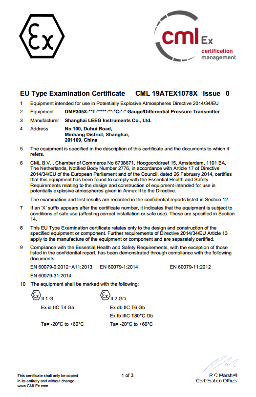 防爆產(chǎn)品的質(zhì)量直接影響人身和財產(chǎn)對的安全,世界各個國家或地區(qū)將防爆產(chǎn)品設(shè)立強制管理的準入制度,基于產(chǎn)品風(fēng)險的高低差異,采用ISO國際標準組織8種認證方式其中一種,制造廠商自我聲明或第三方認證。歐洲防爆認證(ATEX)采用型式檢驗、工廠質(zhì)量體系審核和認證后監(jiān)督(TYPE5)方式進行認證,相比國內(nèi)NEPSI現(xiàn)行采用型式試驗(TYPE1)方式的認證,可信度更高。“中國品牌,服務(wù)全球”,通過ATEX認證為LEEG單晶硅壓力變送器更好服務(wù)歐洲的客戶提供了堅實的基礎(chǔ)。