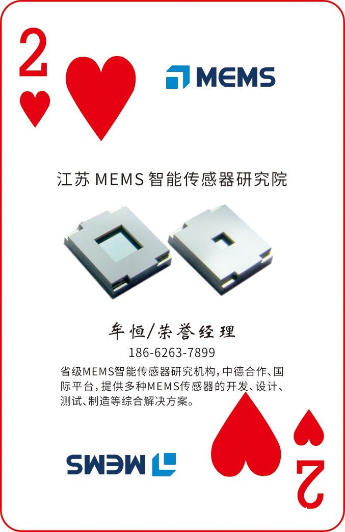 《2020圖頁儀表行業(yè)撲克牌》推出就得到江蘇 MEMS 智能傳感器研究院陳博士的認(rèn)同和支持,陳博士江蘇 MEMS 智能傳感器研究院積極認(rèn)領(lǐng)了紅桃2做為此次的公司的專屬牌!