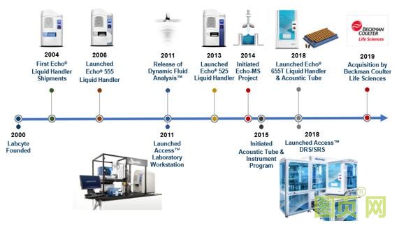 隨后,Echo也沒有停止腳步,2011年推出Access™ Laboratory Workstation全自動(dòng)化處理系統(tǒng);2013年推出大液滴移液系統(tǒng)Echo525;2014年啟動(dòng)Echo-MS項(xiàng)目,以實(shí)現(xiàn)Echo與質(zhì)譜的聯(lián)用;2015年推出Echo Combination Screen Software;2018年推出Echo600系列產(chǎn)品,實(shí)現(xiàn)更快、更準(zhǔn)的移液,并同時(shí)可以實(shí)現(xiàn)樣本庫管理;同年,推出Access™ Dual-Robot System (DRS)和Access™ Single-Robot System (SRS)全自動(dòng)化整合系統(tǒng);并于2019年加入貝克曼庫爾特,成為其自動(dòng)化產(chǎn)品線的一員,與貝克曼庫爾特自動(dòng)化產(chǎn)品和Genomics試劑一起,為用戶提供更完整的解決方案。