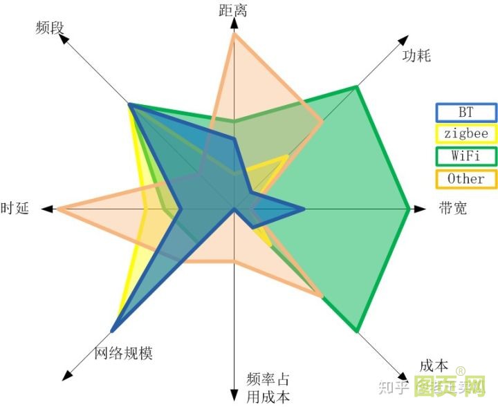 傳輸距離:BLE5具備長(zhǎng)距離特性,室內(nèi)50米左右,相比WiFi在高功率發(fā)射的情況下表現(xiàn)還要好。Zigbee同BT4.2之前的水平差不多,應(yīng)該在室內(nèi)10幾米或者再多一點(diǎn)。NB,Lora,Sigfox屬于廣域的協(xié)議,傳輸距離都在1000米以上。