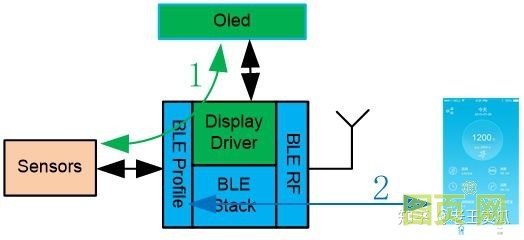 以大家常見(jiàn)的手環(huán)為例:通過(guò)加速度傳感器,脈搏傳感器,血氧傳感,血壓傳感等等,加上藍(lán)牙和藍(lán)牙內(nèi)置的MCU,便可以實(shí)現(xiàn)計(jì)步,心率監(jiān)測(cè)等等運(yùn)動(dòng)或健康應(yīng)用,這里手環(huán)就是一個(gè)比較完整的小應(yīng)用(如圖路徑1);最后利用藍(lán)牙傳輸與手機(jī)連接就可以實(shí)現(xiàn)運(yùn)動(dòng)或健康數(shù)據(jù)采集,實(shí)現(xiàn)大數(shù)據(jù)監(jiān)測(cè)和管理(如圖路徑2)。
