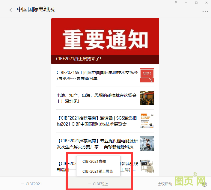 圖1 CIBF微信公眾號(hào)直播導(dǎo)圖