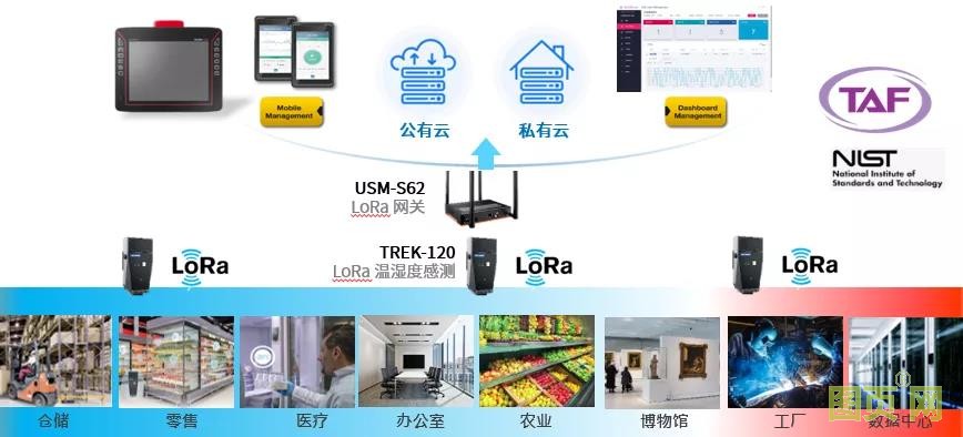 研華冷鏈管理是貫穿整個流程的全程冷鏈管理,無論是制造、運輸、倉儲、門店,還是藥店與醫(yī)院,都可以記錄和管理。只需在相應(yīng)點位安裝研華溫濕度傳感器TREK-120,數(shù)據(jù)就可以通過LoRa發(fā)送到網(wǎng)關(guān)USM-S62,網(wǎng)關(guān)通過網(wǎng)絡(luò)實時上傳數(shù)據(jù)到云。管理者可以通過瀏覽器或電子郵件即時接收警報并監(jiān)控整個冷鏈產(chǎn)品的狀態(tài)。根據(jù)用戶需求,可以選擇私有云或公有云兩種不同的系統(tǒng)架構(gòu)。