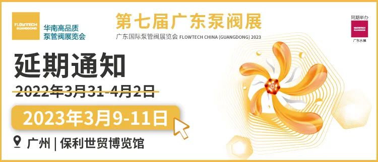 原定于8月3日-5日舉辦的第七屆廣東國際泵管閥展覽會(huì)將延期至2023年3月9日-11日