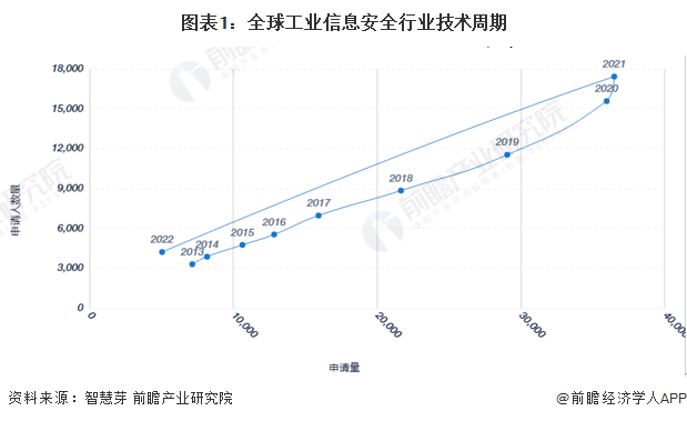 從技術(shù)周期的角度來看,全球工業(yè)信息安全行業(yè)專利申請人數(shù)量以及專利申請量均呈現(xiàn)增長態(tài)勢。整體來看,全球工業(yè)信息安全行業(yè)技術(shù)處于成長期。