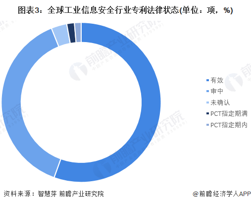 目前,全球工業(yè)信息安全行業(yè)共有118684項專利處于“有效”狀態(tài),占全部專利數(shù)量的55.51%;處于“審中”狀態(tài)的有82147項,占比38.42%。