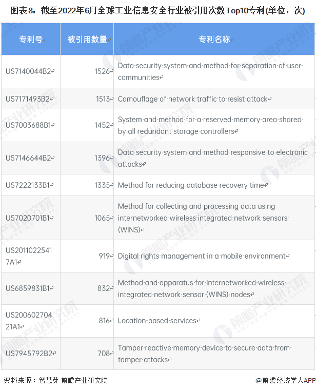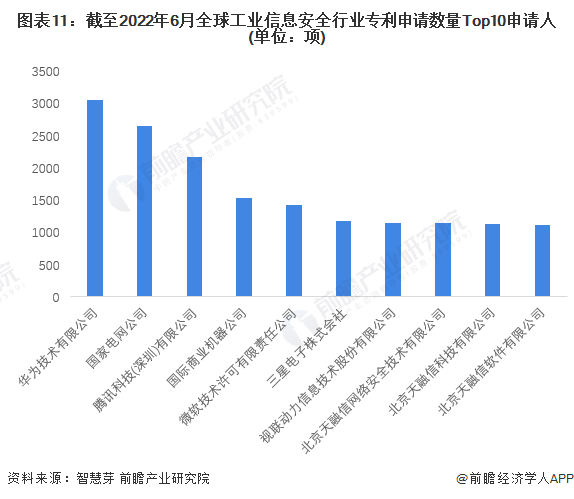 3、全球工業(yè)信息安全行業(yè)專利競爭情況