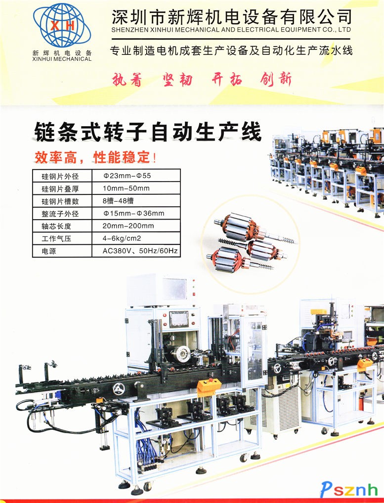 我公司集研發(fā)、設(shè)計(jì)、生產(chǎn)、銷售、服務(wù)于一體。具有多年的馬達(dá)專用轉(zhuǎn)子、定子自動(dòng)化設(shè)備行業(yè)制造經(jīng)驗(yàn),目前主要產(chǎn)品有電機(jī)成套生產(chǎn)設(shè)備及自動(dòng)化生產(chǎn)流水線,如:入軸機(jī)、入端板、入換向器、轉(zhuǎn)子插紙機(jī)、轉(zhuǎn)子繞線機(jī)、轉(zhuǎn)子點(diǎn)焊機(jī)、轉(zhuǎn)子槽楔機(jī)、轉(zhuǎn)子綜合測(cè)試機(jī);定子插紙機(jī)、多頭線圈排繞機(jī)、定子繞線機(jī)、電動(dòng)車馬達(dá)繞線機(jī)及自動(dòng)化生產(chǎn)流水線等,產(chǎn)品廣泛應(yīng)用于航空、汽車、電動(dòng)車、家用電器、醫(yī)療器械、園林器械、電動(dòng)工具、摩托車、發(fā)電機(jī)、吸塵器、風(fēng)筒、自動(dòng)化辦公等電機(jī)生產(chǎn)廠家及整機(jī)成品制造企業(yè)。公司擁有完整、科學(xué)的質(zhì)量管理體系,公司始終堅(jiān)持誠(chéng)信共贏、高效服務(wù)和高性價(jià)比產(chǎn)品滿足廣大用戶的需求,再次真誠(chéng)歡迎社會(huì)各界朋友蒞臨我公司參觀、指導(dǎo)和業(yè)務(wù)洽談。