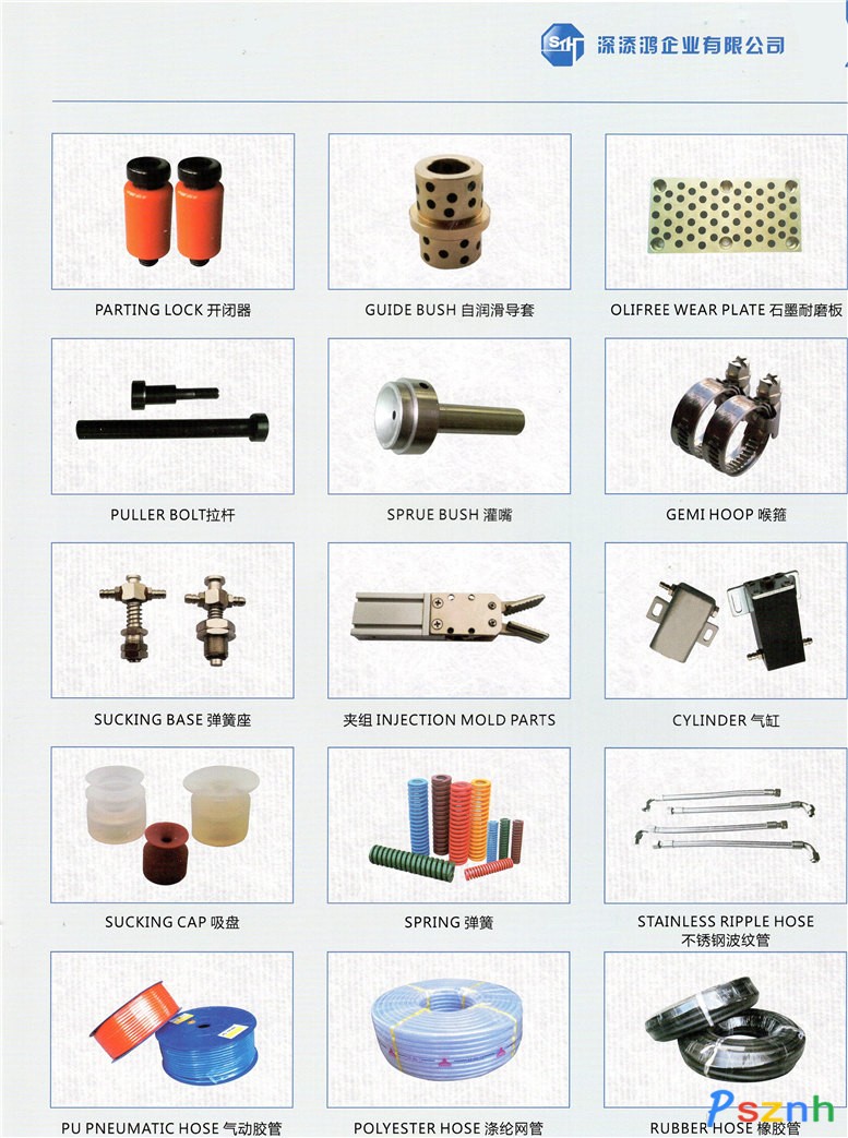 6.標(biāo)準(zhǔn)及非標(biāo)頂針,司筒,小拉桿,定位環(huán),石墨導(dǎo)套,導(dǎo)柱
